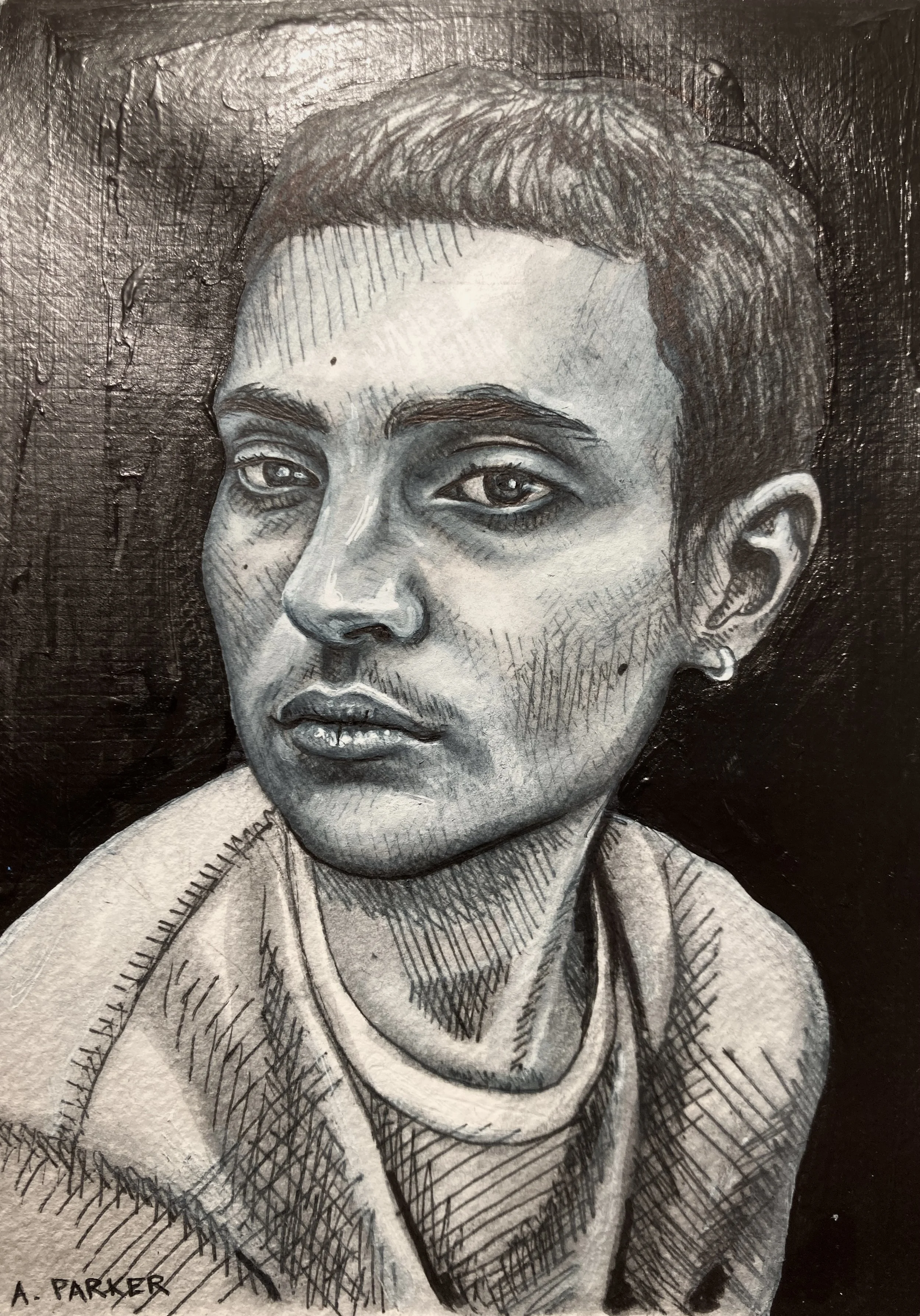"Yearbook Photo." Pen and ink. S. Mustapich, my mother.